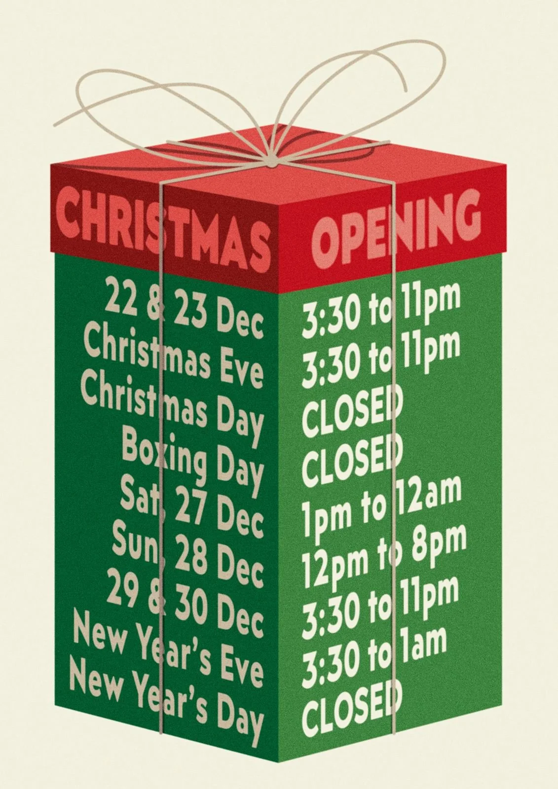 OPENING HOURS*: